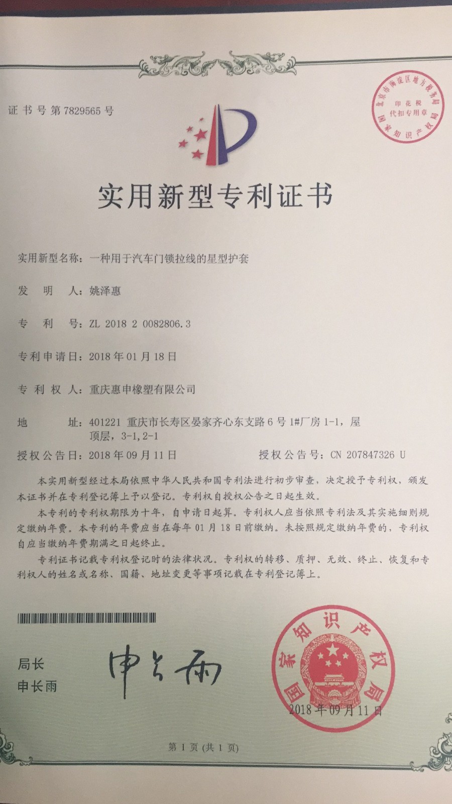 重庆惠申橡塑有限公司成立于2005年,占地面积5000m²,现有员工100人。工厂坐落于重庆市十佳工业园区-长寿区经济技术开发区内。 主要研发、生产、销售汽车各类热塑性弹性体、聚酯弹性体、聚氯乙烯弹性体、尼龙软管等挤出类产品和各类橡胶零件,年产量能力1200万米、2000万件。主要应用于汽车推拉索、换挡拉索、门锁线、摇窗机、天窗软轴、座椅软轴领域上。